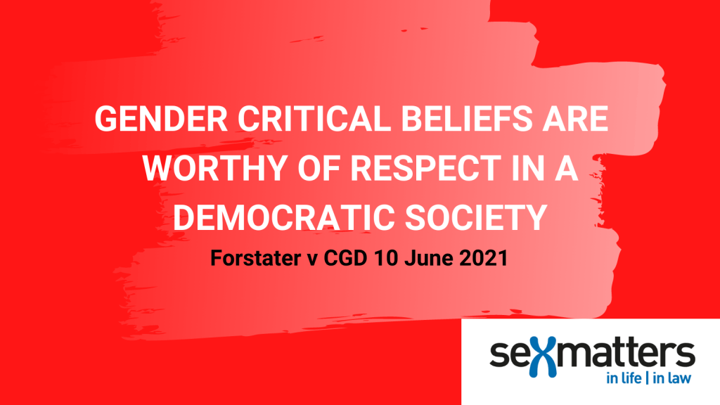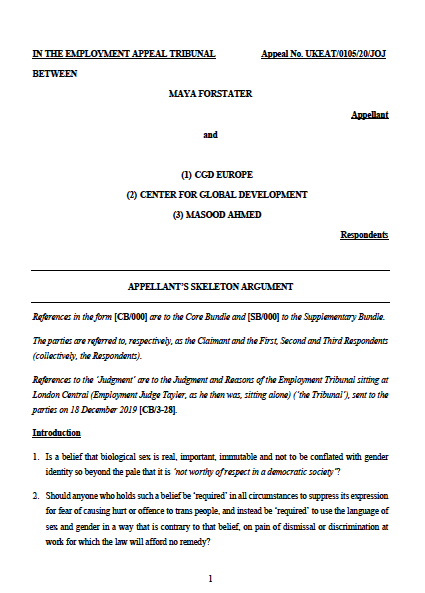 - The Forstater Employment Tribunal judgment: a critical appraisal in light of Miller Karon Monaghan QC